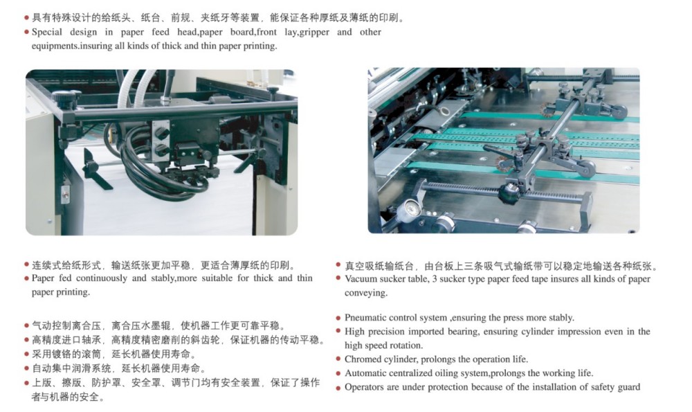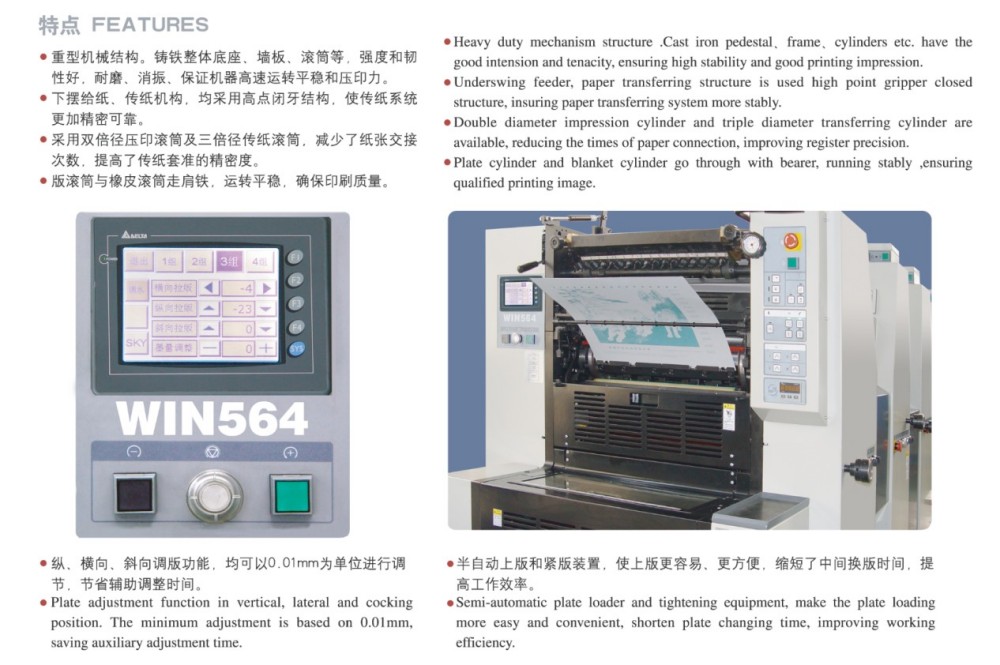 Ha az A2-es négyszínű, rövid távú nyomtatású ofszetnyomógépről van szó, nagy teljesítményű modulokkal van felszerelve, amelyek megbízhatóvá teszik – tökéletes rövid távú nyomtatási feladatokhoz. Ezek a modulok nagy pontosságú görgőket és fogaskerekeket, robusztus papíradagoló mechanizmust, precíz papírregisztrációs rendszert és állandó tintaellátó rendszert tartalmaznak. Megfelel a magas minőségű, hatékony és költséghatékony vágott lapos színes nyomtatás piacának igényeinek, különösen a rövid távú munkáknál. A papírvastagság széles skáláját képes kezelni – a 0,04 mm vékony papírtól a 0,4 mm vastag kartonig. Érintőképernyős vezérlésével és intuitív programozói felületével pedig könnyedén okosan módosíthatja az összes beállítást és nyomtatási paramétert.