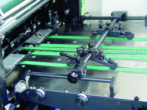 5) A présnek van egy folyamatos papíradagoló modulja, amely egy vákuumszívó asztalhoz kapcsolódik, amelyre három forgó papírszállító szalag van felszerelve. Az ilyen papírszállító rendszer különféle típusú, széles vastagságú papírokat képes megbízhatóan szállítani.